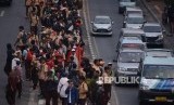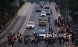 REPUBLIKA.CO.ID, JAKARTA -- Massa aksi pelajar STM memenuhi kawasan Flyover Slipi yang bergerak ke arah Kompleks Gedung Parlemen, Jakarta, Rabu (25/9). Aparat sempat berusaha mengusir massa pelajar tersebut dari lokasi konsentrasi massa.