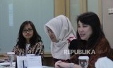 Head of Corporation Affair PT Manulife Aset Manajemen Indonesia Dyah Wulandari Mardyastuti, Director of Legal, Risk & Complience Justitia Tripurwasani dan Chief Economist & Investment Strategist Katarina Setiawan (kiri-kanan) berdialog dengan jajawan redaksi Republika saat berkunjung dke kantor Harian Republika Jakarta, Kamis (26/9). (FOTO : darmawan / republika)