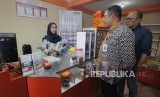 Kepala Otoritas Jasa keuangan (OJK) Perwakilan Malang Sugiarto Kasmuri (kedua kanan) dan Kepala Bagian Hubungan Media dan Masyarakat OJK Dody Ardiansyah (kanan) meninjau pengelolaan Badan Usaha Milik Desa (BUMDes) Pujon Lor di Pujon, Kabupaten Malang, Jawa Timur, Kamis (26/9). (FOTO : Republika/Edwin Dwi Putranto)
