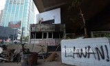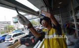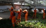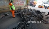 REPUBLIKA.CO.ID, JAKARTA -- Petugas PPSU membersihkan sisa-sisa kericuhan antara massa dengan aparat yang terjadi di kawasan Slipi, Jakarta, Kamis (26/9). Sejumlah fasilitas publik mengalami kerusakan pasca aksi demo pelajar tolak UU KPK hasil revisi dan RKUHP berujung bentrok dengan aparat kepolisian.