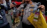 Polisi menunjukkan bom molotov yang disita dari tas pengunjuk rasa yang menolak UU KPK hasil revisi dan RUU KUHP, di depan gedung DPRD Sumut, Medan, Sumatera Utara, Jumat (27/9/2019). (FOTO : ANTARA FOTO)