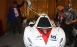 Presiden Direktur Shell Indonesia Darwin Silalahi (kanan) dan Wakil Rektor III Universitas Malang Muarifin (kiri) melihat mobil rakitan mahasiswa dalam Kompetisi Mobil Hemat Energi (KMHE 2019) di Universitas Malang, Jawa Timur, Sabtu (28/9/2019). (FOTO : ANTARA FOTO)