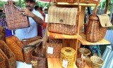 Pengunjung melihat produk kerajinan dari bahan koran bekas saat Gebyar Usaha Mikro Kecil Menengah (UMKM) Juara di lapangan Kampus IPB, Baranangsiang, Kota Bogor, Jawa Barat, Sabtu (28/9/2019). (FOTO : ANTARA FOTO)