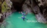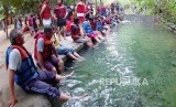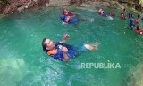 REPUBLIKA.CO.ID, PANGANDARAN -- Pengunjung melakukan body rafting di objek wisata alam Sungai Citumang, Kabupaten Pangandaran, Jumat (27/9).