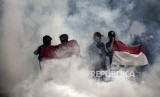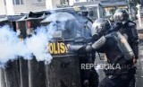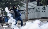 Polisi menembakkan gas air mata untuk menghalau para pengunjuk rasa..