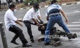 Polisi berpakaian preman mengamankan perusuh saat aksi unjuk rasa di depan Gedung DPRD Provinsi Jawa Barat, Kota Bandung, Senin (30/9). (FOTO : Abdan Syakura)