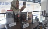 Pengunjung melihat aneka produk kopi olahan peserta pada acara BFI Coffeepreneur Palembang,Sumsel, Selasa (1/10/2019). (FOTO : ANTARA FOTO)