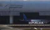 Sebuah pesawat Sriwijaya berada di hanggar GMF milik Garuda Indonesia di Bandara Soekarno Hatta, Tangerang, Banten, Selasa (1/10/2019). (FOTO : Antara/Muhammad Iqbal)