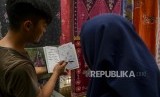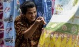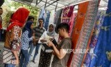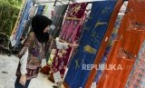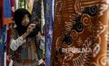Penyandang difabel tuli melihat kain batik yang terpajang di Rumah Batik Palbatu, Tebet, Jakarta, Rabu (2/10). (FOTO : Republika/Putra M. Akbar)