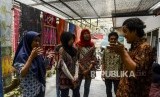 Petugas memberikan penjelasan mengenai kain batik kepada penyandang difabel tuli di Rumah Batik Palbatu, Tebet, Jakarta, Rabu (2/10). (FOTO : Republika/Putra M. Akbar)