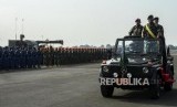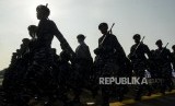 Sejumlah anggota TNI melakukan defile saat mengikuti gladi bersih HUT TNI di Taxy Way Echo Pangkalan Udara Halim Perdana Kusuma, Jakarta, Kamis (3/10). (FOTO : Republika/Putra M. Akbar)