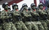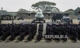 Sejumlah prajurit TNI saat mengikuti gladi bersih HUT TNI di Taxy Way Echo Pangkalan Udara Halim Perdana Kusuma, Jakarta, Kamis (3/10). (FOTO : Republika/Putra M. Akbar)