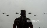 Sejumlah helikopter TNI AU saat mengikuti gladi bersih HUT TNI di Taxy Way Echo Pangkalan Udara Halim Perdana Kusuma, Jakarta, Kamis (3/10). (FOTO : Republika/Putra M. Akbar)