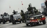 Sejumlah kendaraan alutista saat mengikuti gladi bersih HUT TNI di Taxy Way Echo Pangkalan Udara Halim Perdana Kusuma, Jakarta, Kamis (3/10). (FOTO : Republika/Putra M. Akbar)