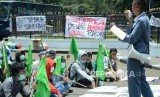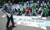 REPUBLIKA.CO.ID, BANDUNG -- Peserta aksi yang tergabung dalam Pengurus Wilayah Pelajar Islam Indonesia (PII) menggelar aksi di depan, Gedung Sate, Kota Bandung, Kamis (3/10).