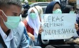 Peserta aksi yang tergabung dalam Pengurus Wilayah Pelajar Islam Indonesia (PII) menggelar aksi di depan, Gedung Sate, Kota Bandung, Kamis (3/10). (FOTO : Republika/Edi Yusuf)