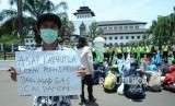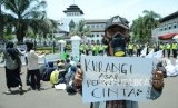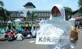 Aksi penolakan revisi UU KPK berlangsung di depan Gedung Sate, Bandung. .