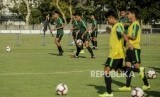 Sejumlah pesepakbola Timnas U-23 saat melakukan latihan di kompleks Gelora Bung Karno, Jakarta, Sabtu (5/10). (FOTO : Republika/Putra M. Akbar)