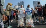 REPUBLIKA.CO.ID, JAKARTA -- Komunitas Clean The City menggelar kampanye buang sampah pada tempatnya saat gelaran Hari Bebas Kendaraan Bermotor (HBKB) kawasan Bundaran HI, Jakarta, Ahad (6/10/2019).