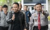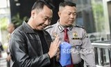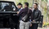 Bupati Lampung Utara, Agung Ilmu Mangkunegara (kiri) saat tiba untuk melakukan pemeriksaan di Gedung Merah Putih KPK, Jakarta, Senin (7/10). (FOTO : Republika/Putra M. Akbar)