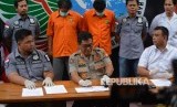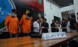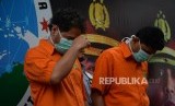 REPUBLIKA.CO.ID, JAKARTA -- Menantu penyanyi Elvy Sukaesih Muhammad Basurrah alias M dan rekannya berinisial MS saat konferensi pers ungkap kasus narkoba di halaman Dit Narkoba Polda Metro Jaya, Jakarta, Senin (7/10/2019).