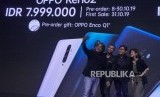 RENO2 SERIES. Brand Representative OPPO Reno2 Series Darwis Triadi, Brand Planning Manager OPPO Indonesia Stiffen Andika berfoto bersama dengan (Public Relations Manager OPPO Indonesia Aryo Meidianto didampingi (Brand Representative OPPO Reno2 Series Agatha Suci di Jakarta, Selasa (8/10). (FOTO : Yogi Ardhi/Republika)