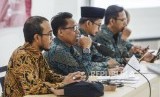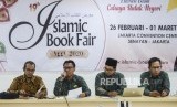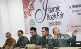 Ketua Islamic Book Fair (IBF) Syahruddin El Fikri bersama Ketua Bidang Khaerudin, Wakil Ketua IBF Husni Kamil, Ketua Bidang Promosi Tatang Sundesyah (dari kiri) memberikan paparan saat acara launching Islamic Book Fair di Jakarta, Selasa (8/10). (FOTO : Republika/Putra M. Akbar)