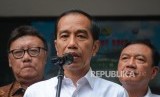Presiden Republik Indonesia Joko Widodo saat konferensi pers terkait penyerangan terhadap Menteri Kordinator Bidang Politik, Hukum, dan Keamanan Wiranto di Pandeglang di Rumah Sakit Pusat Angkatan Darat (RSPAD) Gatot Soebroto, Jakarta, Kamis (10/10/2019). (FOTO : Thoudy Badai)