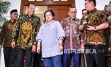 Pimpinan Majelis Permusyawaratan Rakyat (MPR) menemui Presiden ke-5 Republik Indonesia Megawati Soekarnoputri di kediamannya, Menteng, Jakarta Pusat, Kamis (10/10). (FOTO : Republika/Nawir Arsyad Akbar)