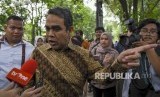 Wakil Ketua MPR Ahmad Muzani (tengah) menjawab pertanyaan wartawan saat tiba di kediaman Presiden ke-5 RI Megawati, di Jakarta, Kamis (10/10/2019). (FOTO : Antara/Nova Wahyudi)