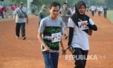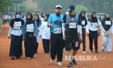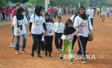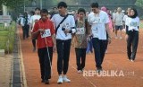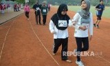 Dalam rangka Hari Penglihatan Sedunia, ratusan Difabel Netra (DN) berolah raga berjalan kaki ditemani pendamping pada acara Blind Run & Walk yang digelar Syamsi Dhuha Foundation (SDF), di Lapangan Saraga, Kota Bandung, Sabtu (12/10). (FOTO : Republika/Edi Yusuf)