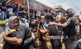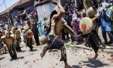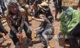 REPUBLIKA.CO.ID, BANDUNG -- Warga mengikuti tradisi Rempug Tarung Adu Tomat (perang tomat) busuk di Kampung Cikareumbi, Kecamatan Lembang, Kabupaten Bandung Barat, Ahad (13/10).