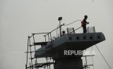 Progress Pembangunan LRT. Konstruksi LRT menunggu penyambungan di atas peremptan Mampang, Jakarta Selatan, Senin (14/10/2019). (FOTO : Republika/ Wihdan)