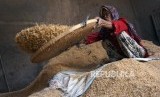 Pekerja mensortir kulit padi di salah satu tempat penggilingan padi di Kabupaten Pekalongan, Jawa Tengah, Senin (14/10/2019). (FOTO : Harviyan Perdana Putra/ANTARA FOTO)