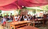 REPUBLIKA.CO.ID, KARAWANG -- Siswa-siswi SDN Malangsari II, Desa Malangsari, Kecamatan Pedes, Kabupaten Karawang terpaksa belajar di pekarangan rumah. Kondisi tersebut terpaksa dilakukan karena bangunan sekolah mereka rusak sejak 2017 dan belum diperbaiki.