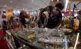 Pengunjung pameran industri kecantikan Cosmobeate Indonesia 2019 memadati salah satu booth pameran di JCC Jakarta, Kamis (17/10). Pameran kalo ke-14 ini diikuti 370 perusahaan dari 14 negara. (FOTO : Yogi Ardhi/Republika)