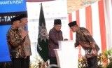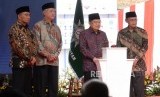 Groundbreking Majid At-Tanwir. Wakil Presiden Jusuf Kalla (kedua kanan), Ketum PP Muhammadiyah Haedar Nasir (kanan), Mendikbud Muhadjir Effendy (kiri), dan Watimpres Malik Fadjar memencet tombol simbolis tanda pelaksanaan Groundbreaking Masjid At-Tanwir PP Muhammadiyah, Jakarta, Kamis (17/10/2019). (FOTO : Republika/ Wihdan)