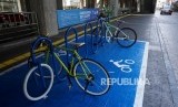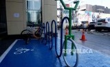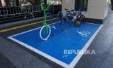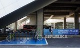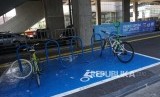 Sejumlah sepeda yang terparkir di Parkir Sepeda Stasiun MRT Cipete Raya, Jakarta, Senin (21/10). (FOTO : Republika/Prayogi)