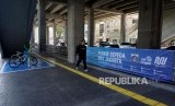 Warga melintas disamping sepeda yang terparkir di Parkir Sepeda Stasiun MRT Cipete Raya, Jakarta, Senin (21/10). (FOTO : Republika/Prayogi)