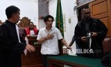 Aktor yang juga terdakwa kasus penyalahgunaan narkoba Jefri Nichol (kedua kanan) berjalan seusai menjalani sidang tuntutan di Pengadilan Negeri Jakarta Selatan, Senin (21/10/2019). (FOTO : SIGID KURNIAWAN/ANTARA FOTO)
