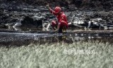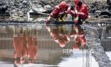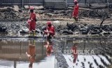 Petugas dari Pertamina bersama relawan melakukan penyedotan sisa minyak pasca kebakaran pipa bahan bakar minyak milik Pertamina di Kelurahan Melong, Kota Cimahi, Rabu (23/10). (FOTO : Abdan Syakura_Republika)