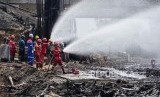 Petugas dari Pertamina melakukan penyemprotan di area pipa bahan bakar minyak milik Pertamina yang terbakar di Kelurahan Melong, Kota Cimahi, Rabu (23/10). (FOTO : Abdan Syakura_Republika)