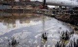 Ceceran minyak yang mencemari sawah milik warga pasca kebakaran pipa bahan bakar minyak milik Pertamina di Kelurahan Melong, Kota Cimahi, Rabu (23/10). (FOTO : Abdan Syakura_Republika)