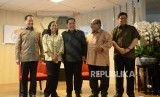 Menteri BUMN Erick Thohir (tengah) berbincang dengan para mantan Menteri BUMN Mustafa Abubakar, Rini Soemarno,Laksamana Sukardi dan Sugiharto (dari kiri) pada acara serah terima jabatan di Kementerian BUMN, Jakarta, Rabu (23/10). (FOTO : Republika/Prayogi)