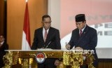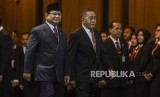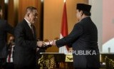 REPUBLIKA.CO.ID, JAKARTA -- Jenderal TNI Purn Ryamizard Ryacudu melakukan serah terima jabatan (sertijab) menteri pertahanan kepada Prabowo Subianto di Aula AH Nasution, Kementerian Pertahanan, Jakarta, Kamis (23/10).