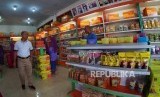 Pengunjung melintasi gerai di toko oleh-oleh Ummi Aufa Hakim milik nasabah Bank Syariah Mandiri di Bukittinggi, Kamis (24/10). (FOTO : Yogi Ardhi/Republika)