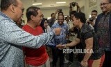 Menteri Pemuda dan Olahraga (Menpora) Zainudin Amali didampingi Ketua Umum PB PABBSI Rosan Perkasa Roeslani dan atlet angkat besi Eko Yuli Irawan saat berkunjung meninjau pelatnas cabang olahraga angkat besi di Mess Kweni, Jakarta, Senin (28/10). (FOTO : Republika/Putra M. Akbar)