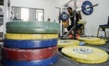 Atlet angkat besi Surahmat Suwoto Wijoyo saat sesi latihan di Mess Kweni, Jakarta, Senin (28/10). (FOTO : Republika/Putra M. Akbar)