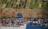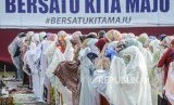 Sejumlah Aparatur Sipil Negara (ASN) Pemerintah Kota Depok berdoa usai melaksanakan Shalat Istisqa di Lapangan Balai Kota Depok, Jawa Barat, Selasa (29/10). (FOTO : Republika/Putra M. Akbar)