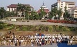 Sejumlah Aparatur Sipil Negara (ASN) Pemerintah Kota Depok saat melaksanakan Shalat Istisqa di Lapangan Balai Kota Depok, Jawa Barat, Selasa (29/10). (FOTO : Republika/Putra M. Akbar)